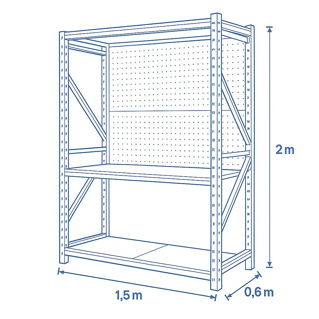 3-Level Steel Storage Shelving with Square-Hole Pegboard (1.5m Wide)