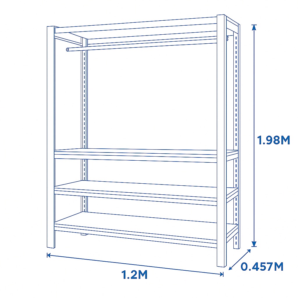 Overall (without castors): 1.2 m (W) × 0.45 m (D) × 1.98 m (H)