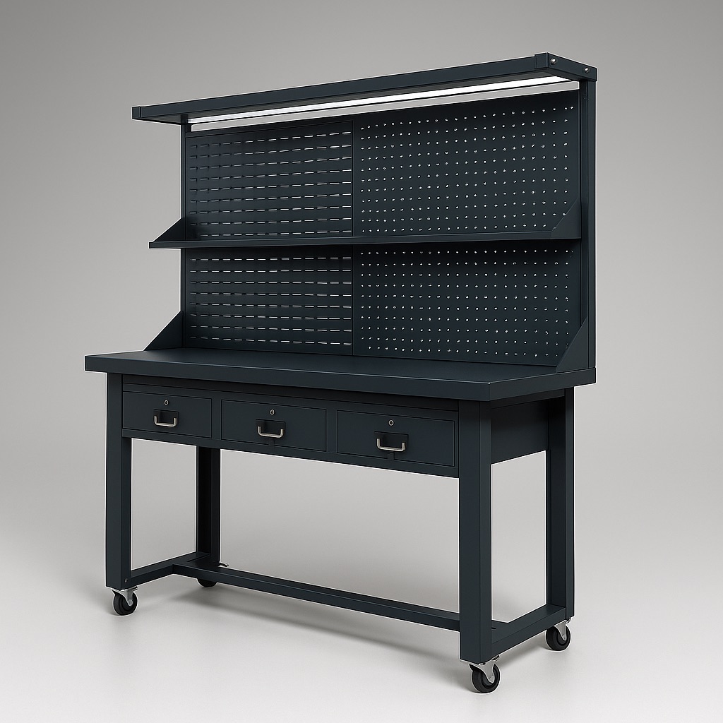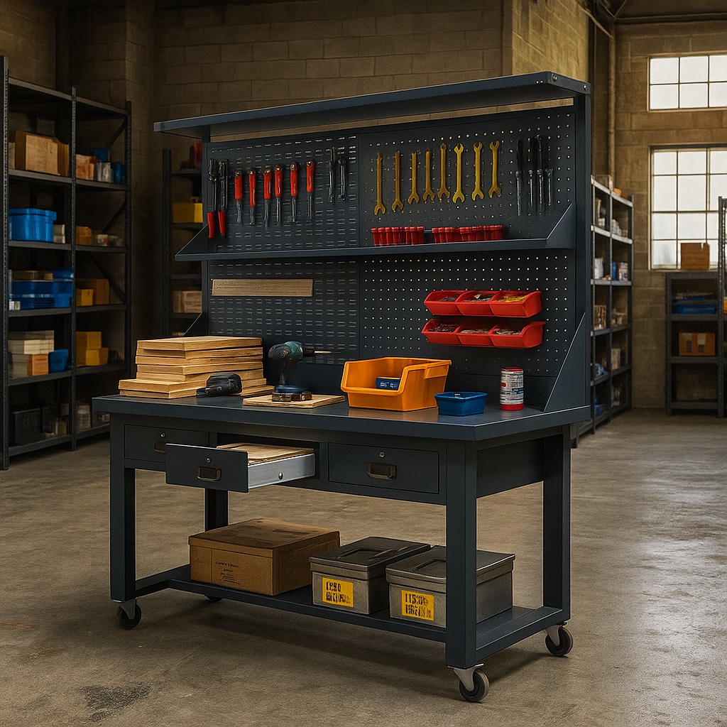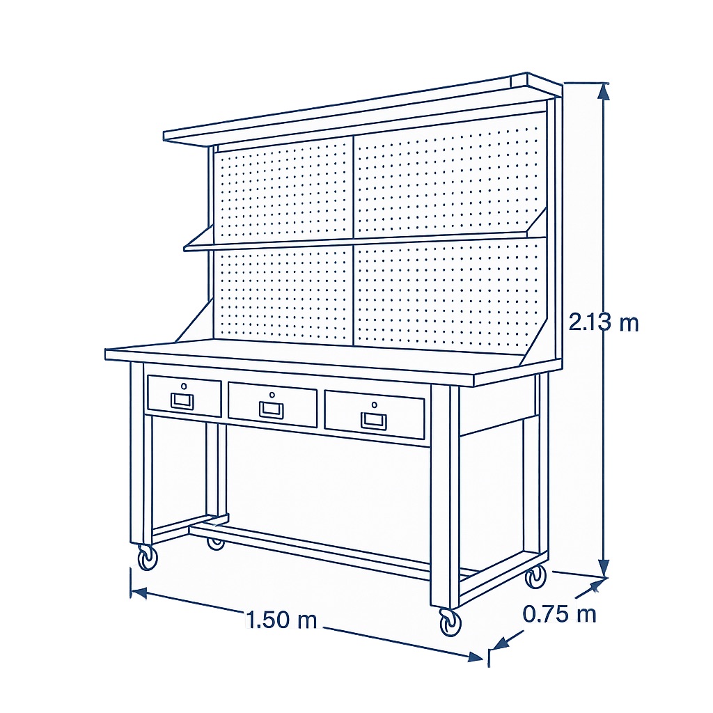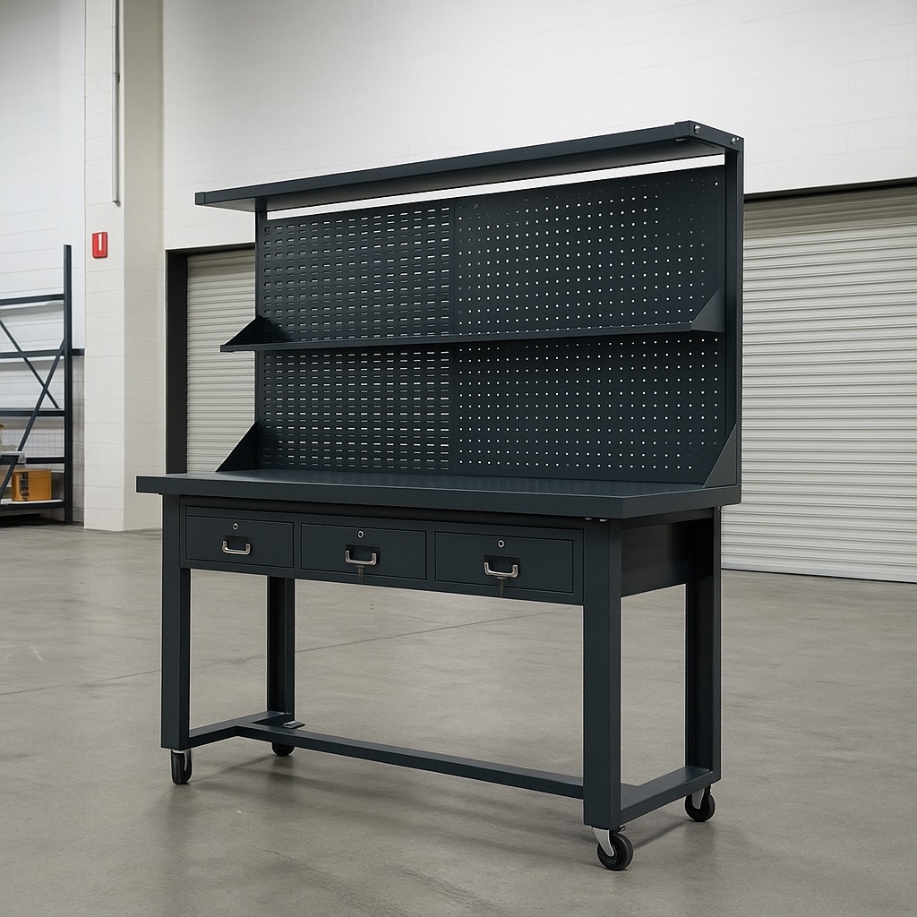 This heavy duty mobile work bench combines power, durability, and convenience — perfect for workshops, garages, warehouses, or home projects.